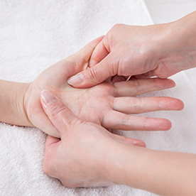 因長時間提重物或重複用力拇指,導致拇指側肌腱發炎,出現手腕疼痛及活動受限。